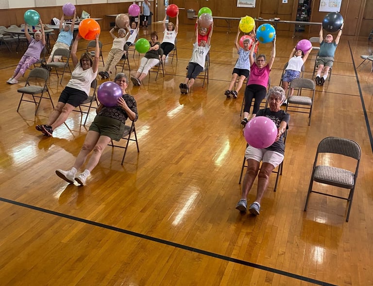 Chair Yoga - An adapted exercise class for the less active and those with physical limitations. Helps to improve balance, strength, flexibility, and a sense of well being. Standing is optional. Hours / Days: M,W,F: 10:15 -11:00 AM, Cost -$35 per month, Walkin - $5